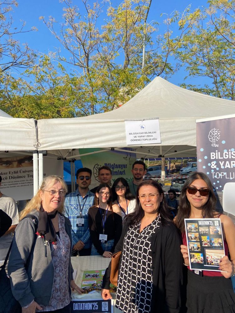Bölüm Yönetimimizden Prof. Dr. Emel Kuruoğlu Kandemir ve Dr. Öğr. Üyesi Kadriye Filiz Balbal DEU CSAI Topluluğu standında öğrencilerimizle birlikte.