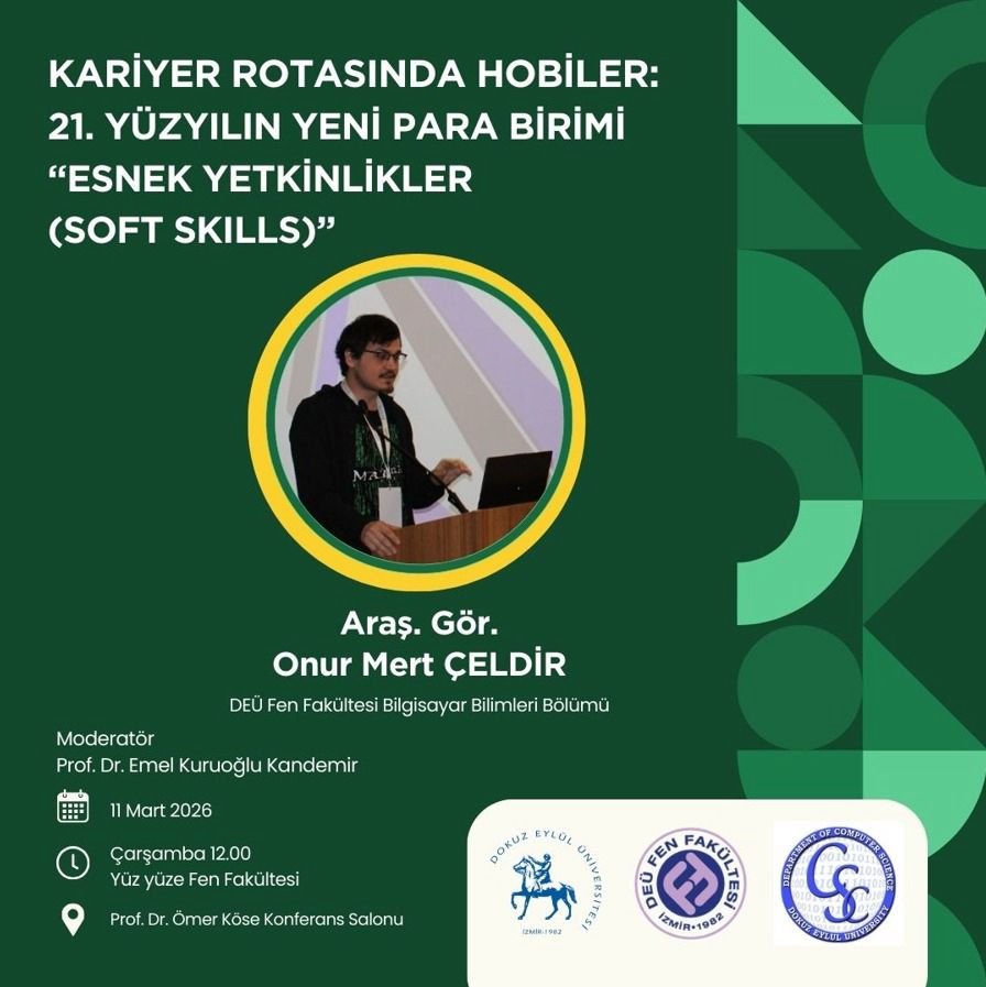 11 Mart 2026, Çarşamba günü, “Kariyer Rotasında Hobiler: 21. Yüzyılın Yeni Para Birimi ‘Esnek Yetkinlikler (Soft Skills)” başlıklı seminerimiz gerçekleştirilecektir.